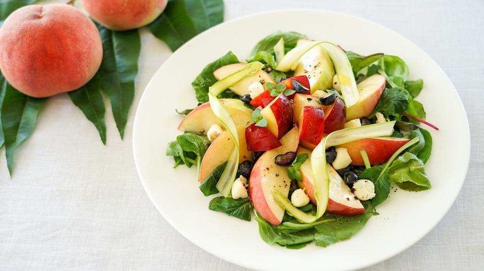 じめじめした日が続きますね。さっぱりとしたサラダと季節の桃を味わいたいあなたにこちらのレシピをお贈りします